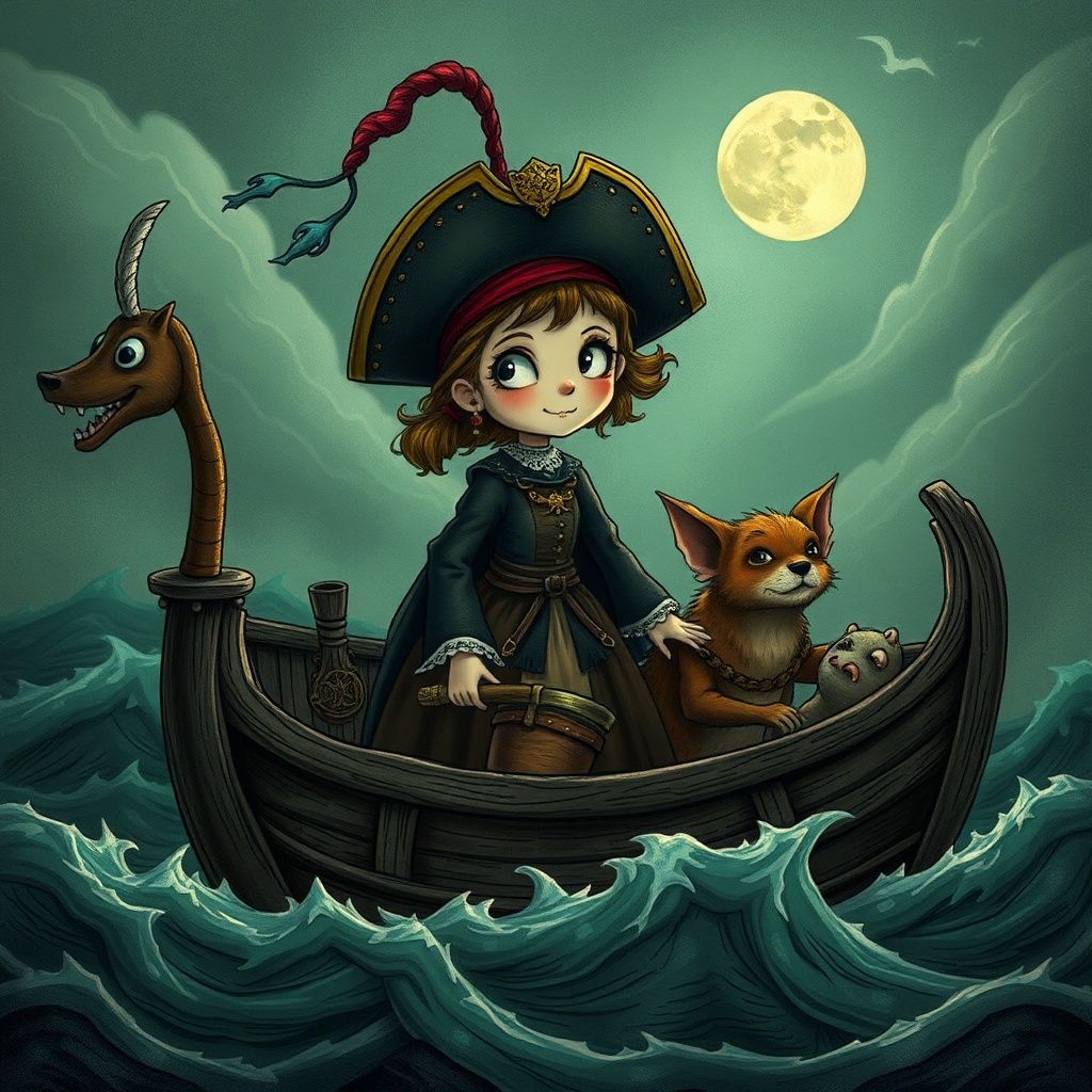 Grace O'Malley stood proudly at the helm of her ship, The Sea Hawk, her hair billowing in the morning breeze. Her eyes sparkled with excitement as she gazed across the endless ocean. Today marked the beginning of another grand adventure, and her crew of misfit animals was ready.